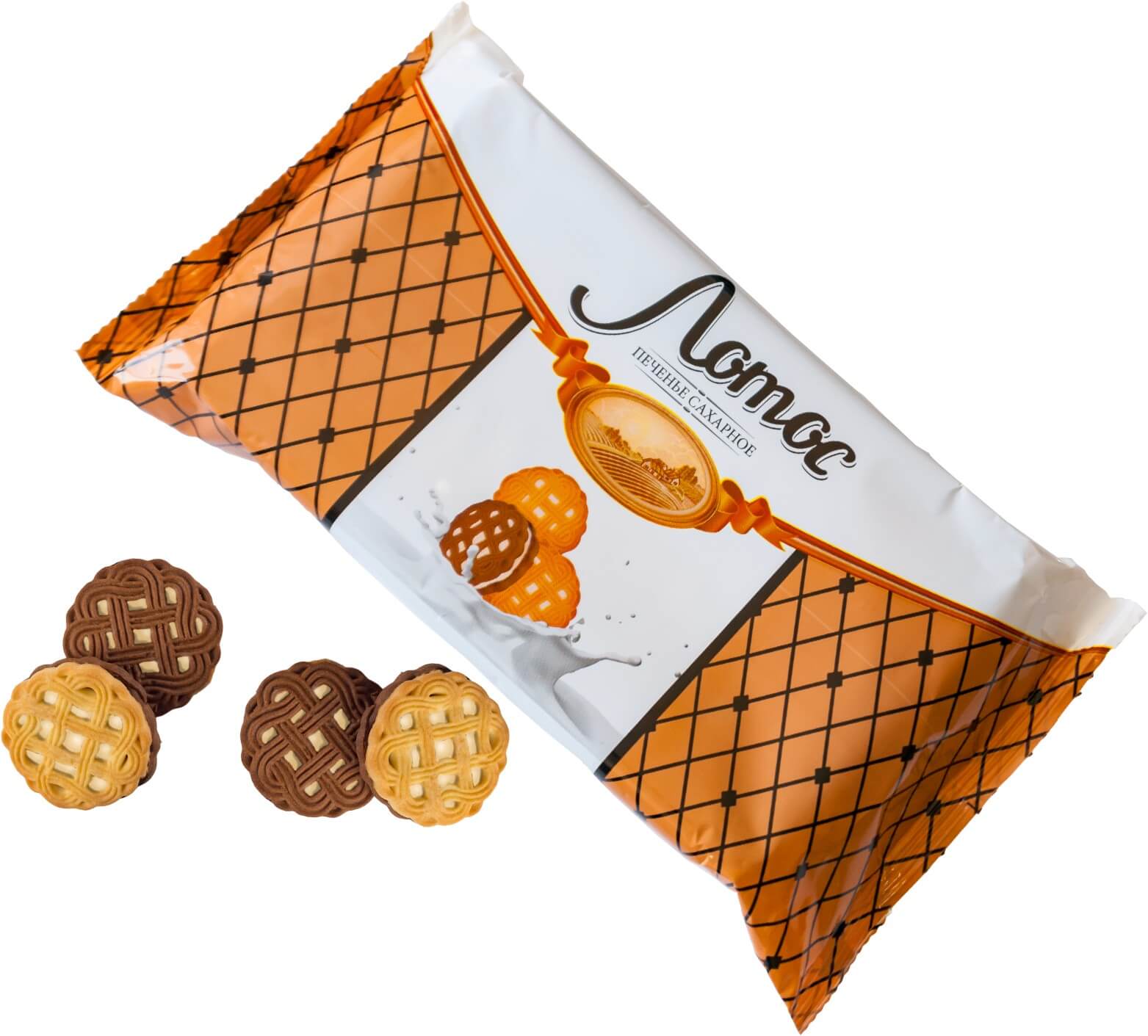 Двухцветное сахарное печенье-сэндвич с нотками итальянского печенья и ароматом «кофе мокко» с прослойкой из нежного ванильного крема.