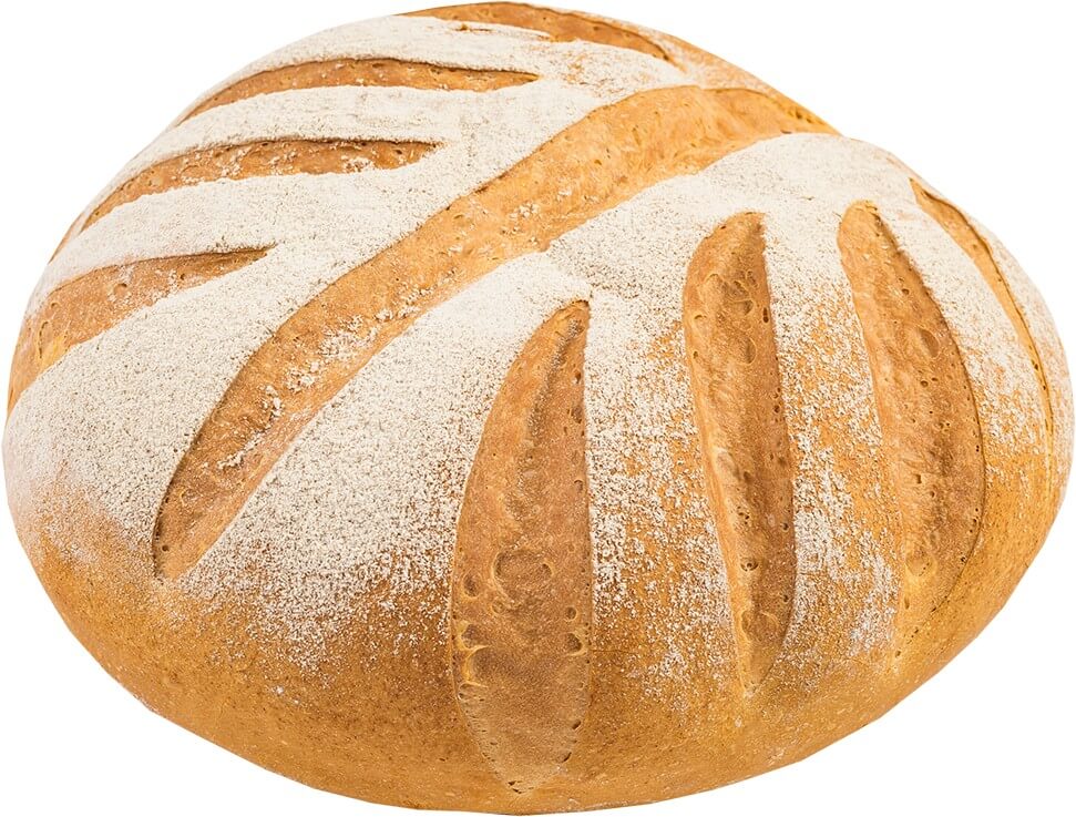 Форма круглая с надрезами. Поверхность присыпана пшеничной мукой. Упакованный.